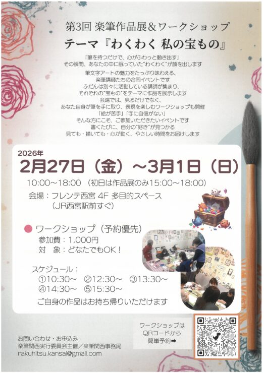 第3回 楽筆作品展&ワークショップ テーマ『わくわく 私の宝もの』 @ 西宮市フレンテホール 多目的スペース