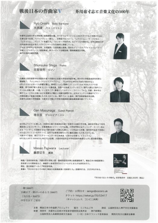 ピアノと声楽でたどる 戦後日本の作曲家Ⅴ 芥川也寸志と音楽文化の100年