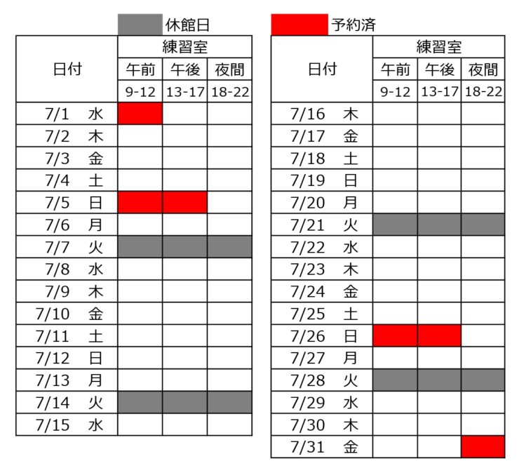 公的な行事などで既に使用できなくなっている日にご注意ください