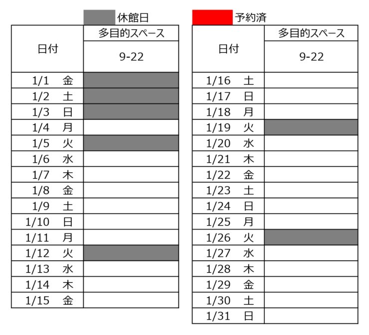 *2027年1月分の多目的スペースについては先着順(9:00~)となります