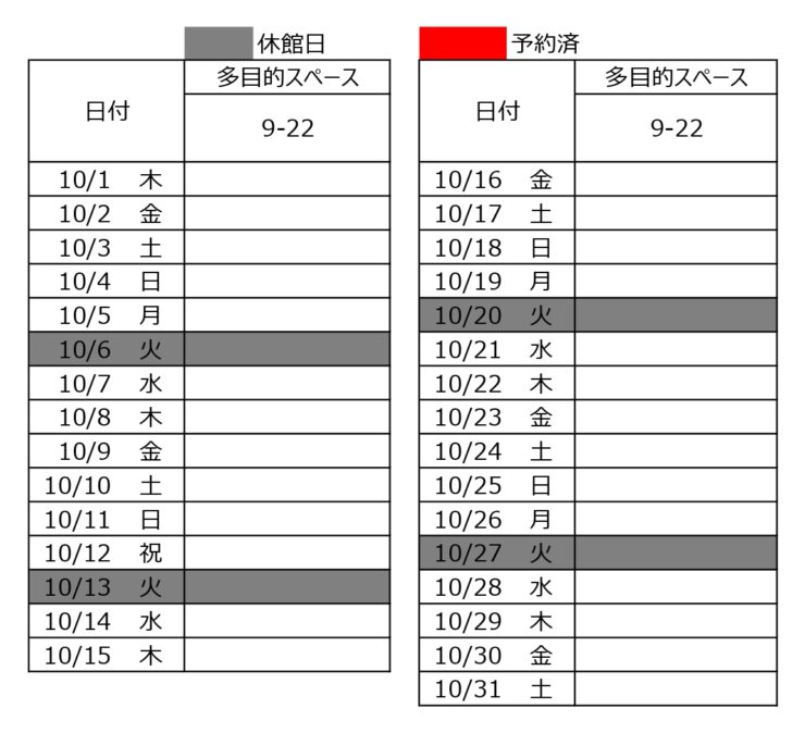 *2026年10月分の多目的スペースについては先着順(9:00~)となります