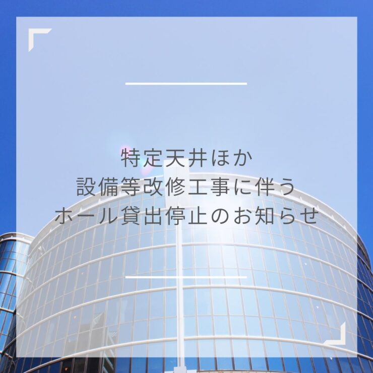 西宮市フレンテホールは、特定天井ほか設備等改修工事のため、2026年11月から約5ヶ月間休館となる予定です。